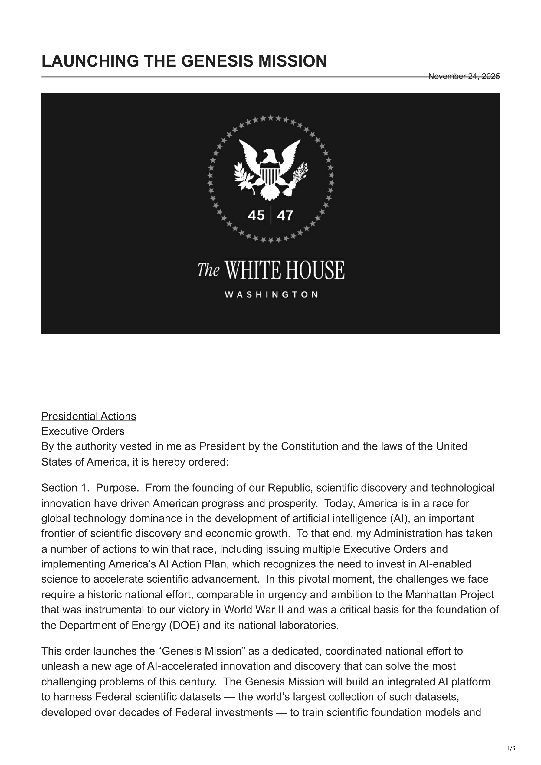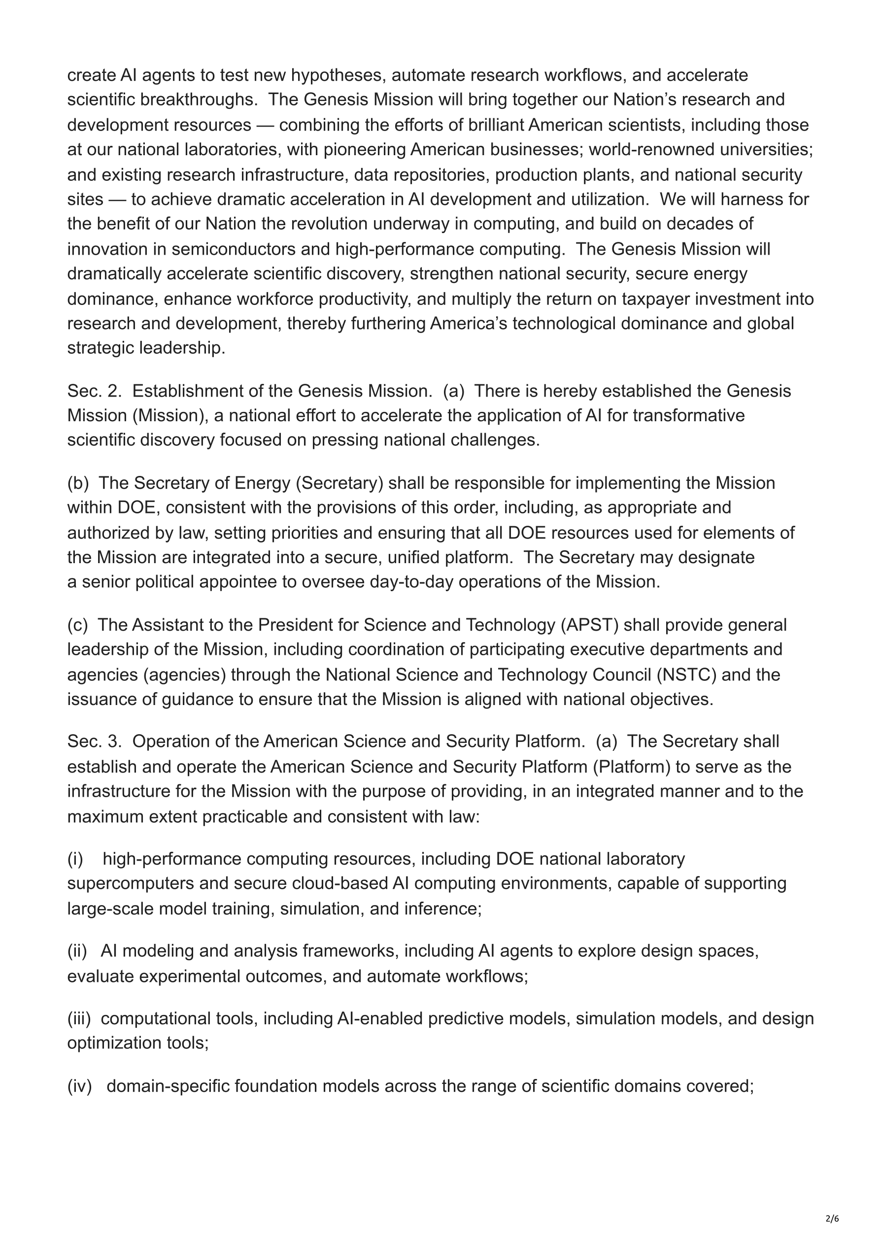 国家级人工智能战略“创世纪计划”(Genesis Mission)