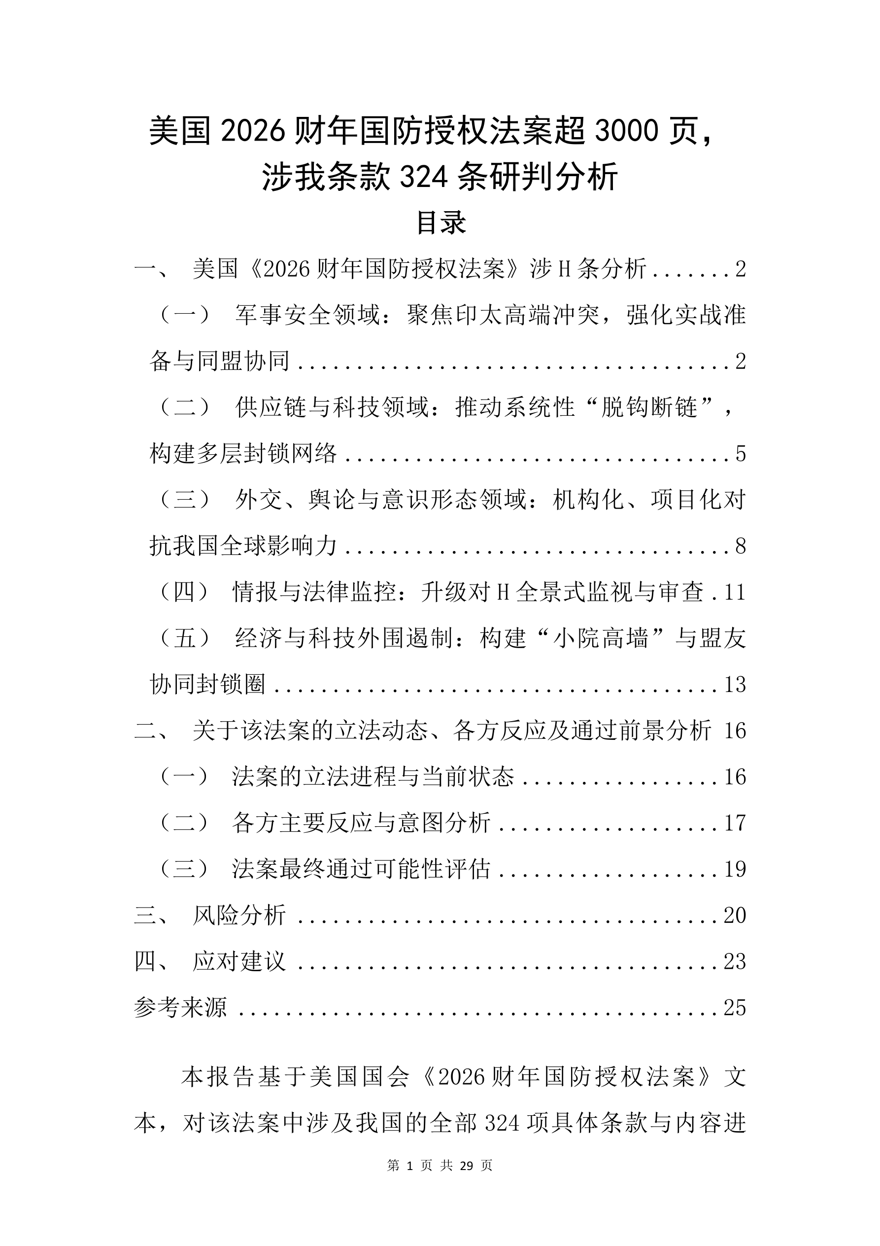美国2026财年国防授权法案超3000页,涉我条款324条研判分析