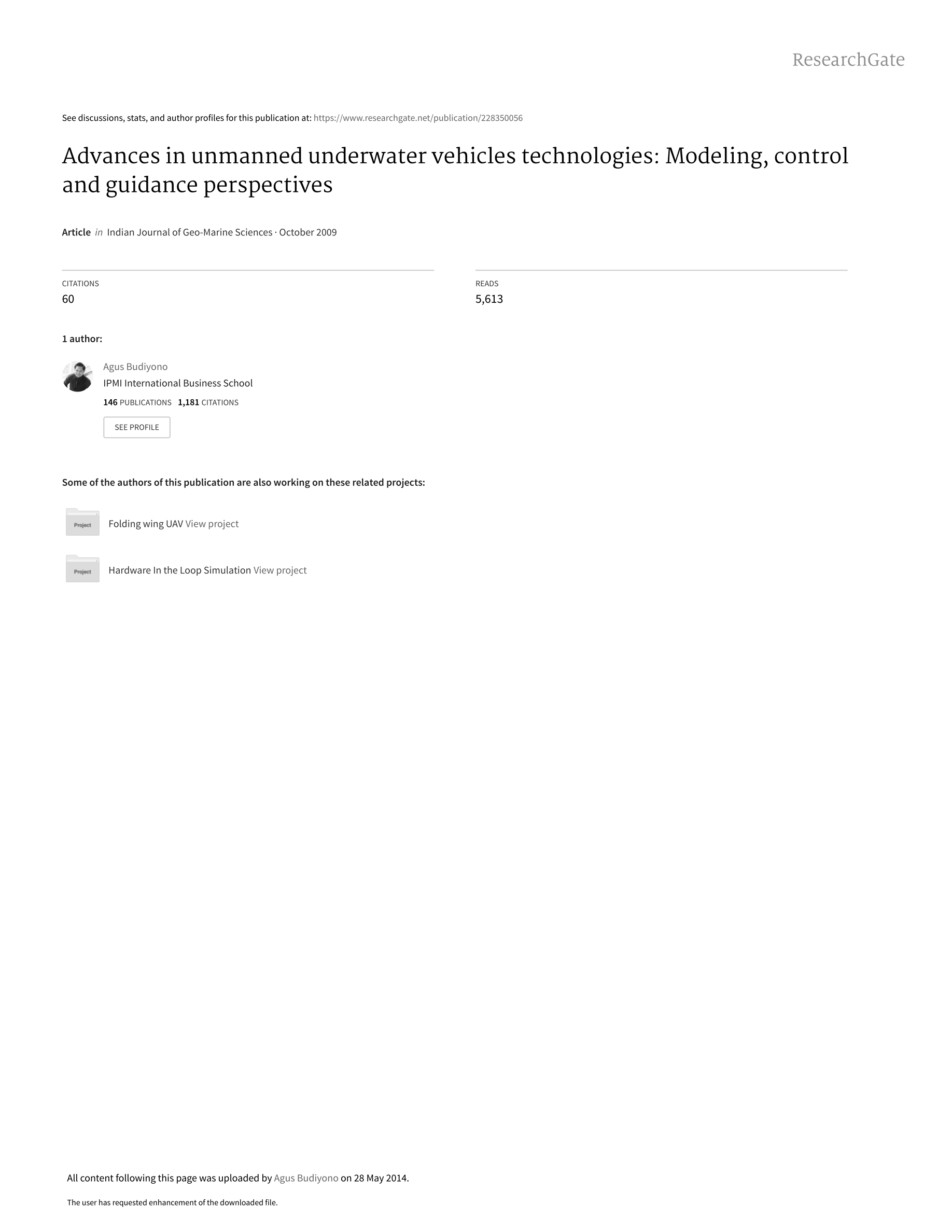 Advances in unmanned underwater vehicles technologies: Modeling, control and guidance perspectives