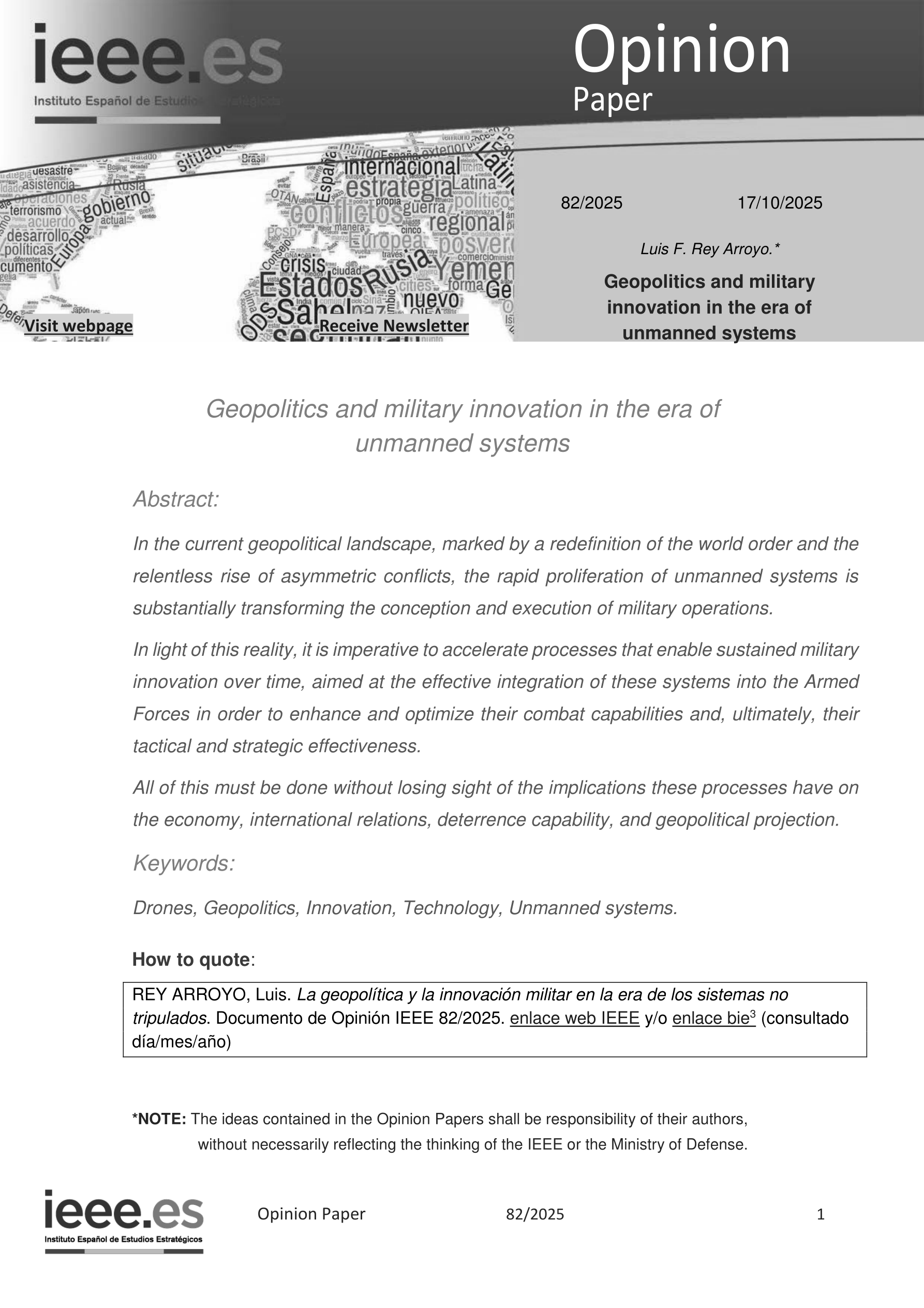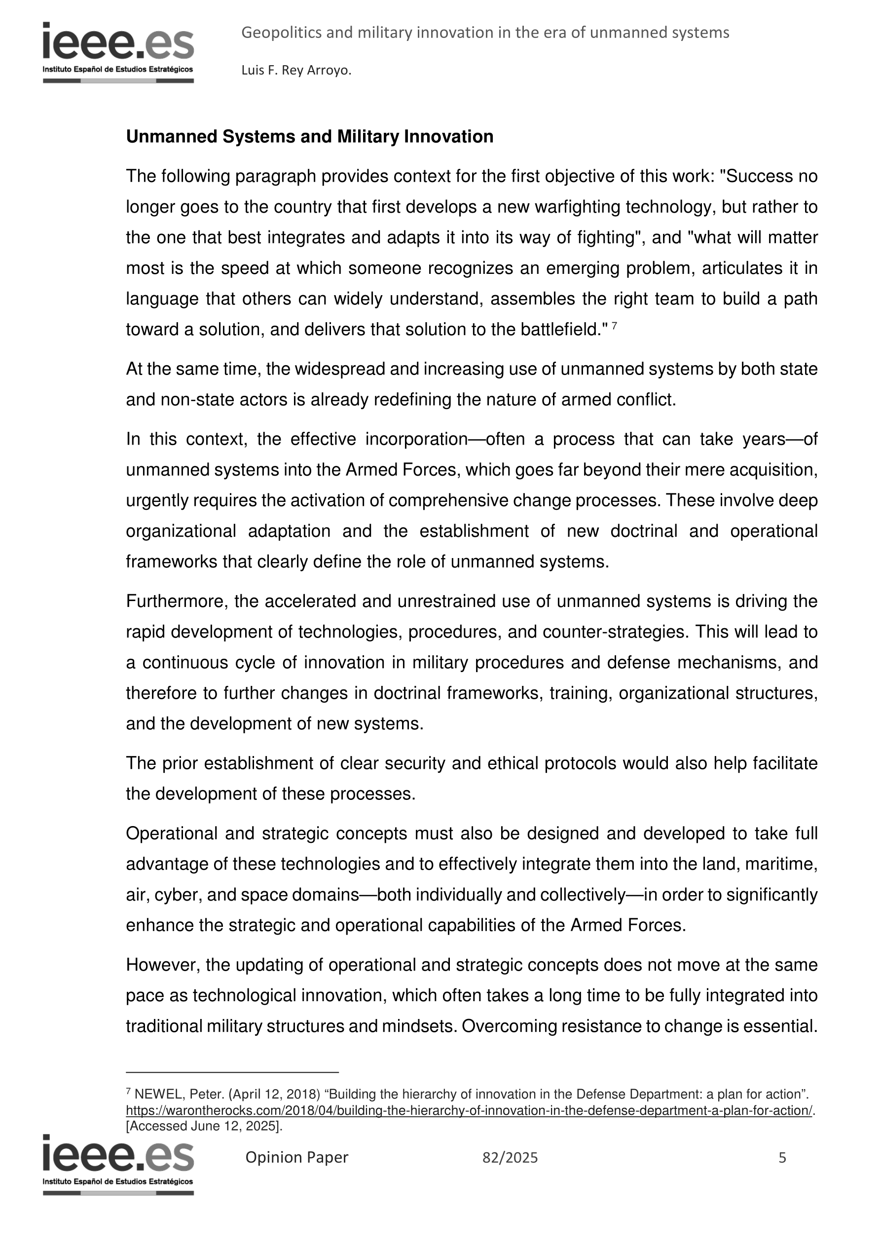 无人系统时代的地缘政治与军事创新(原文)