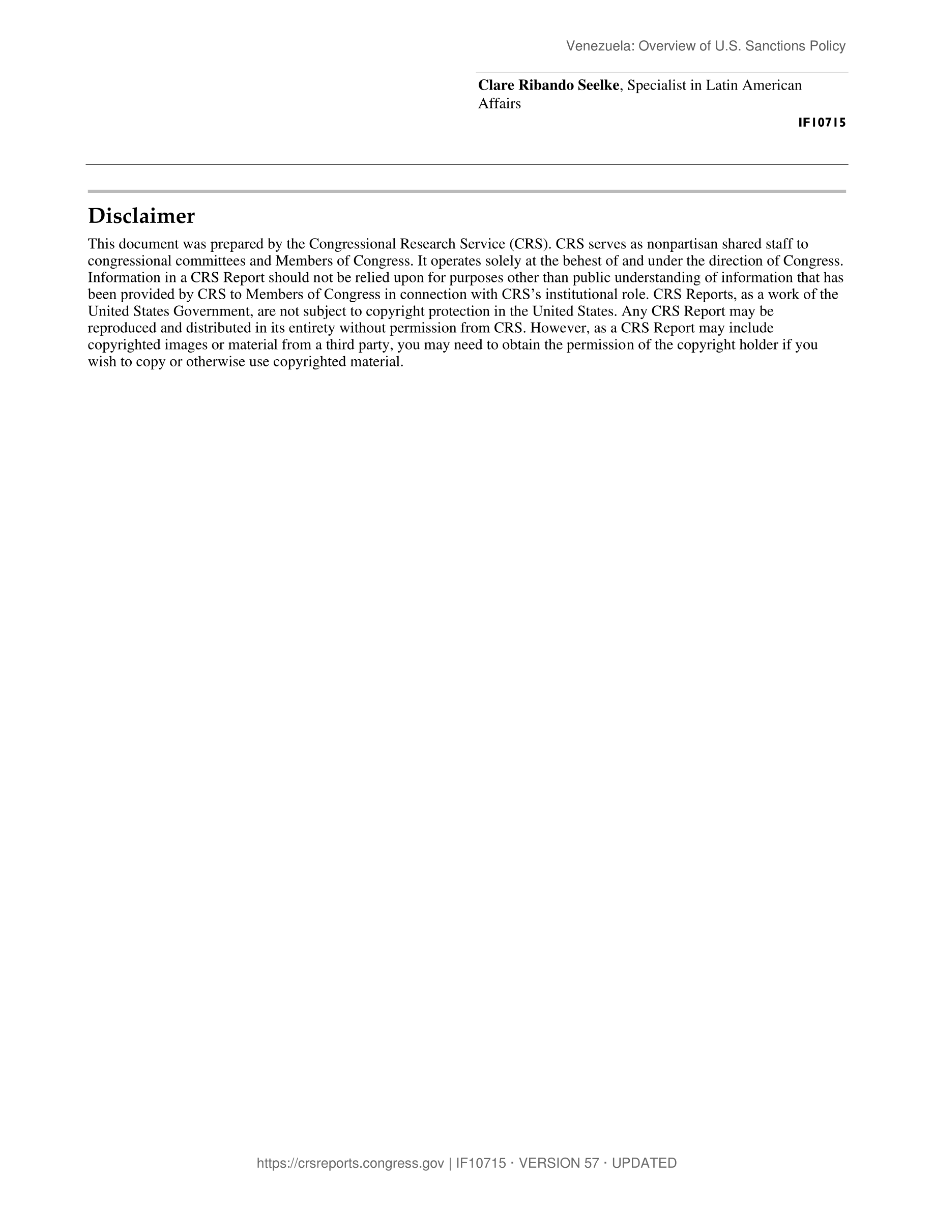 Venezuela: Overview of U.S. Sanctions Policy