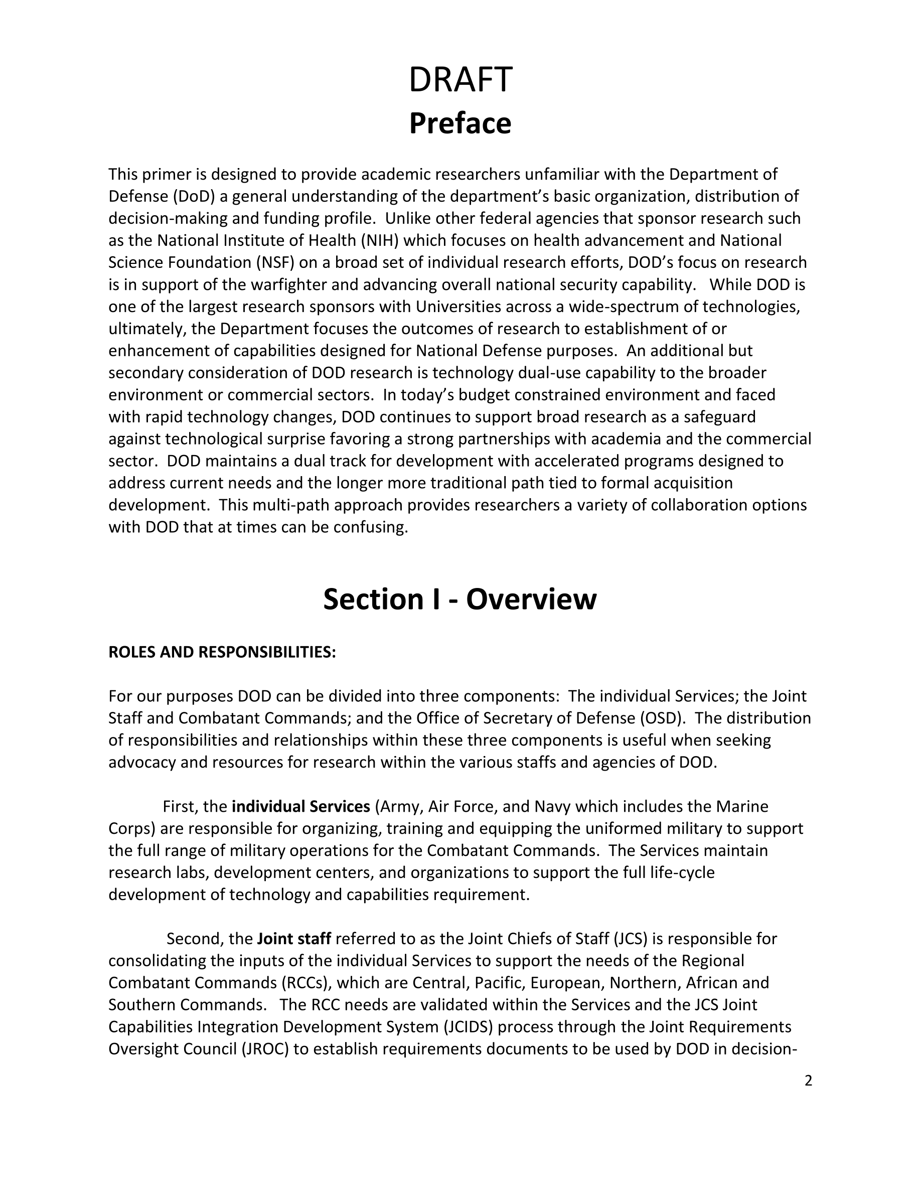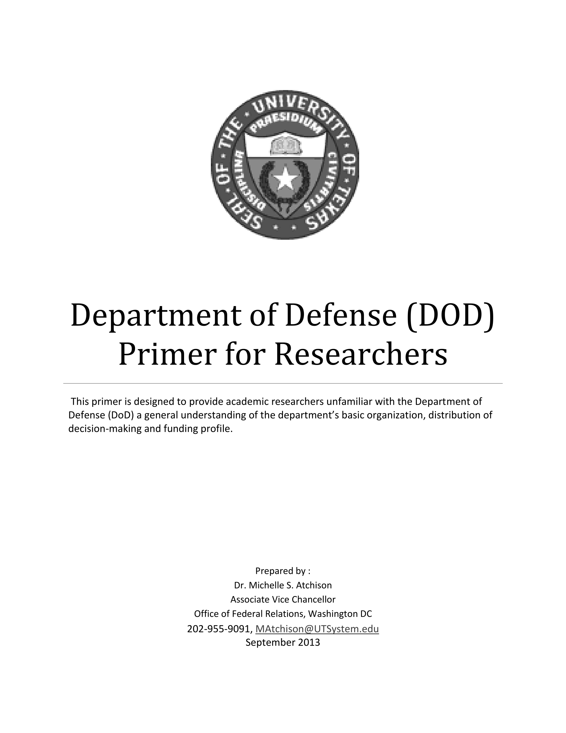 This primer is designed to provide academic researchers unfamiliar with the Department of Defense (DoD) a general understanding of the department’s basic organization, distribution of decision-making and funding profile.