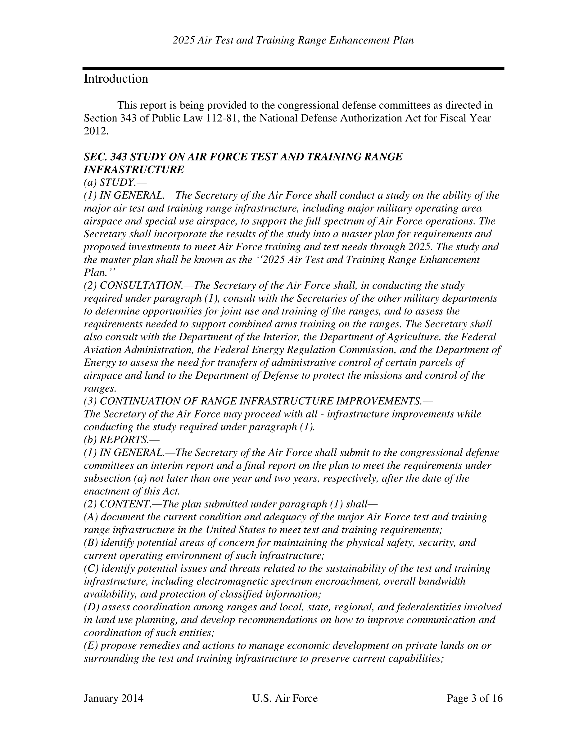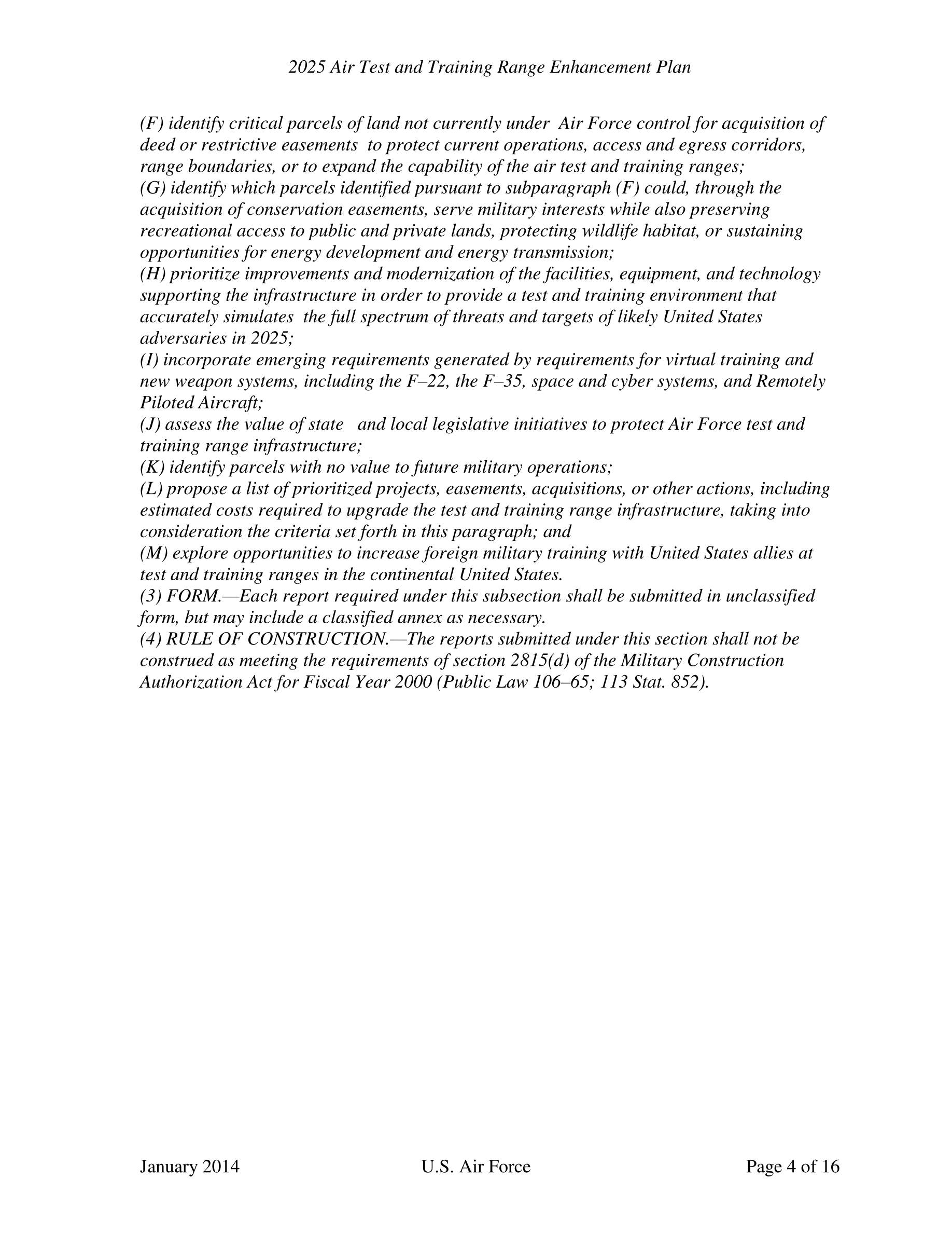 2025 Air Test and Training Range Enhancement Plan