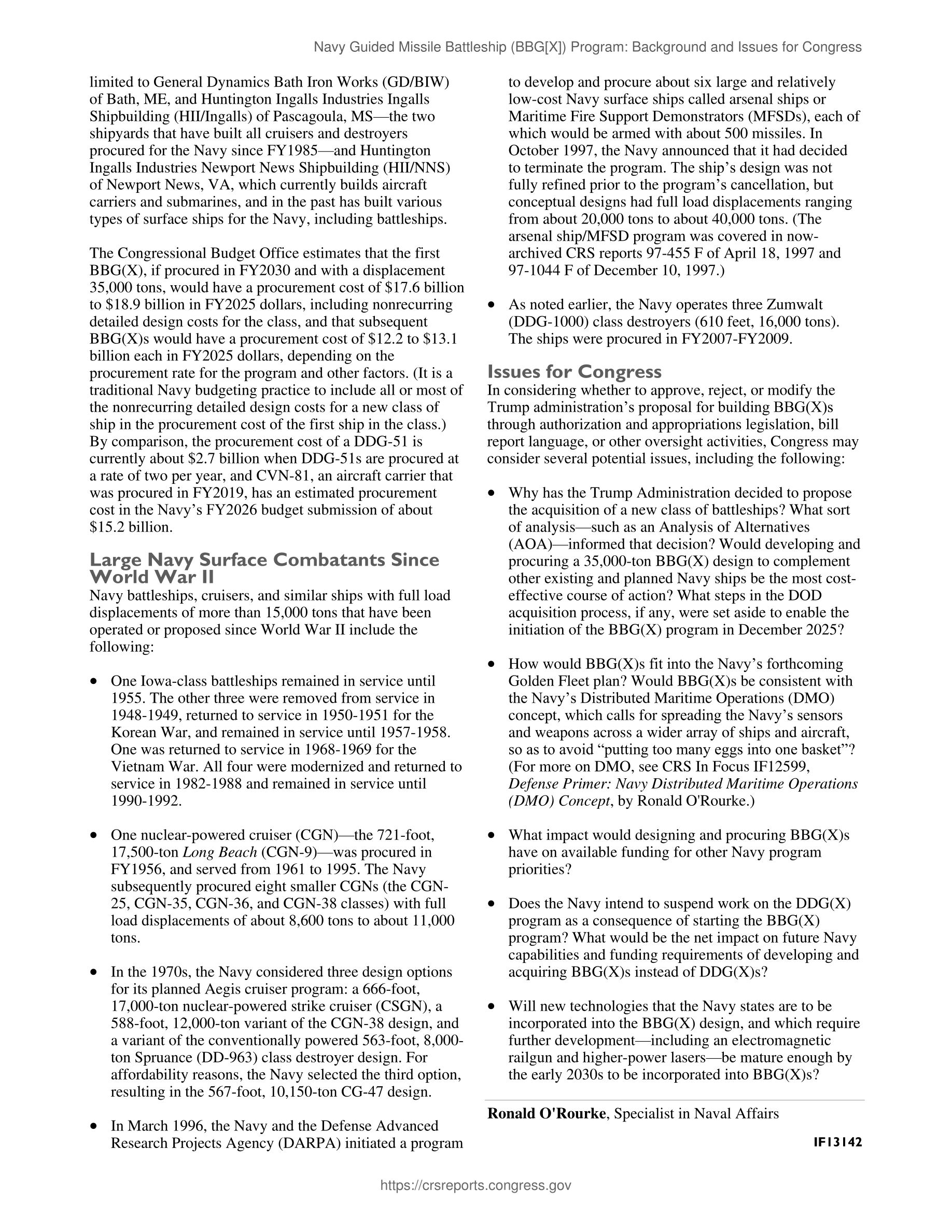 Navy Guided Missile Battleship (BBG[X]) Program: Background and Issues for Congress