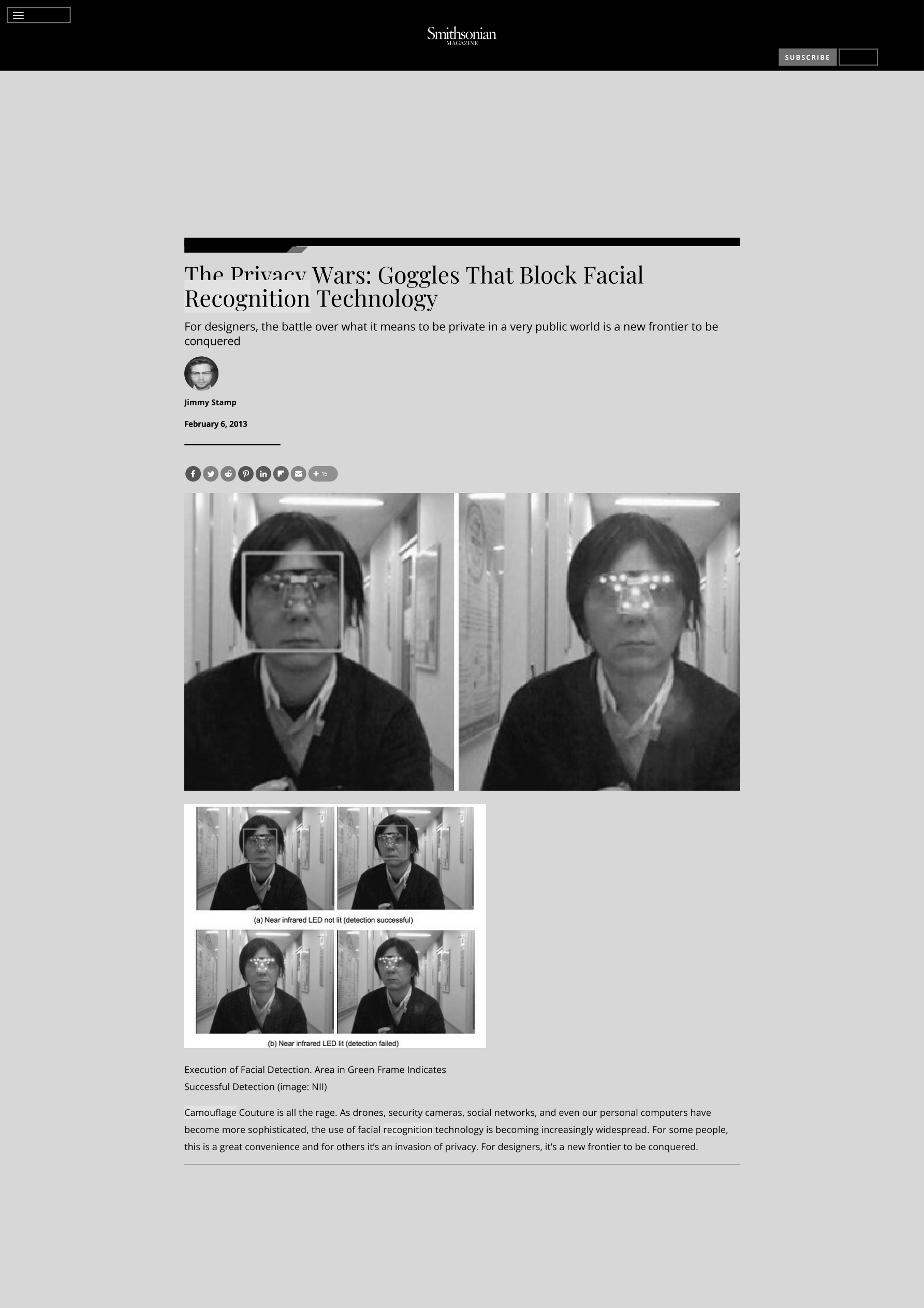 Execution of Facial Detection. Area in Green Frame Indicates Successful Detection (image: NII) Camouflage Couture is all the rage. As drones, security cameras, social networks, and even our personal computers h...