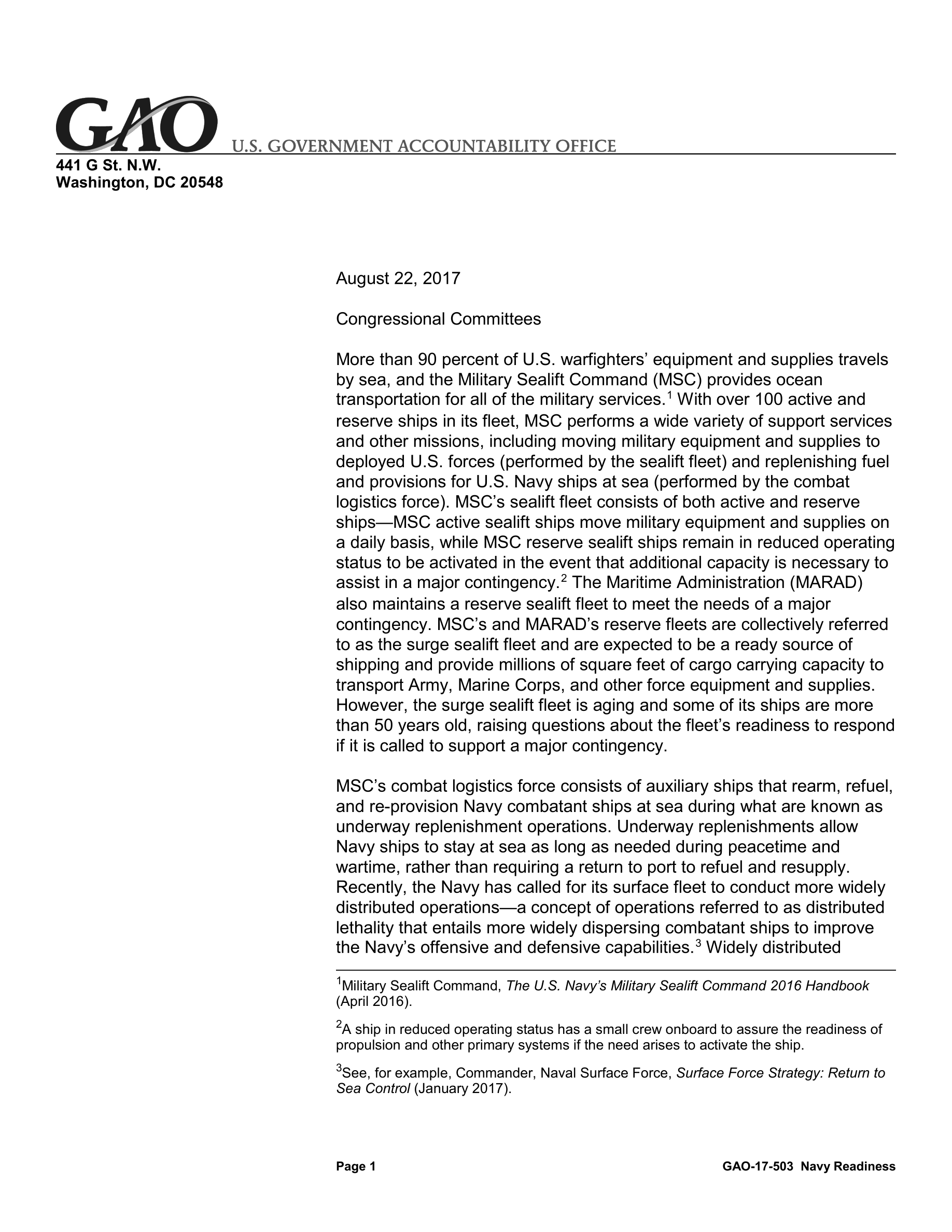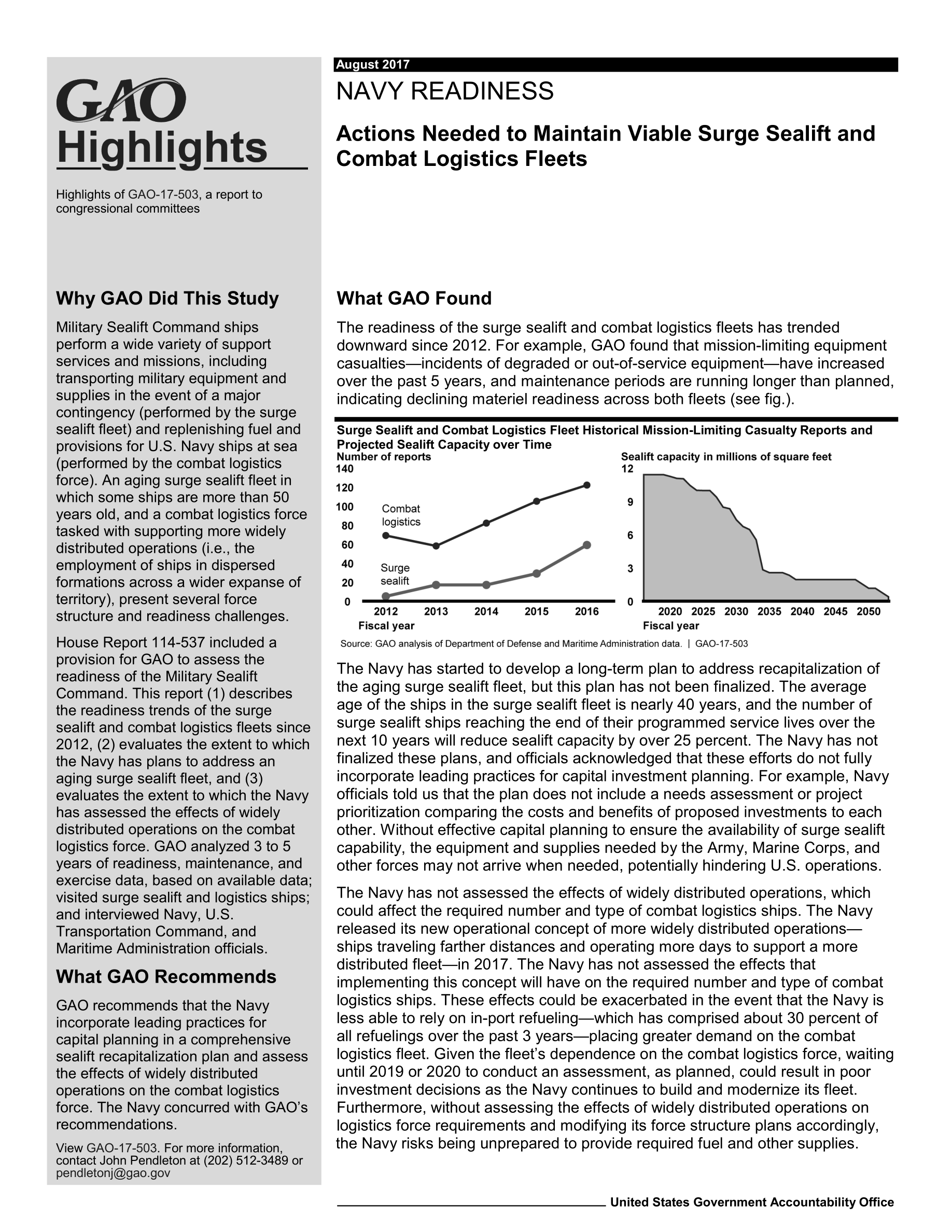 NAVY READINESS Actions Needed to Maintain Viable Surge Sealift and Combat Logistics Fleets