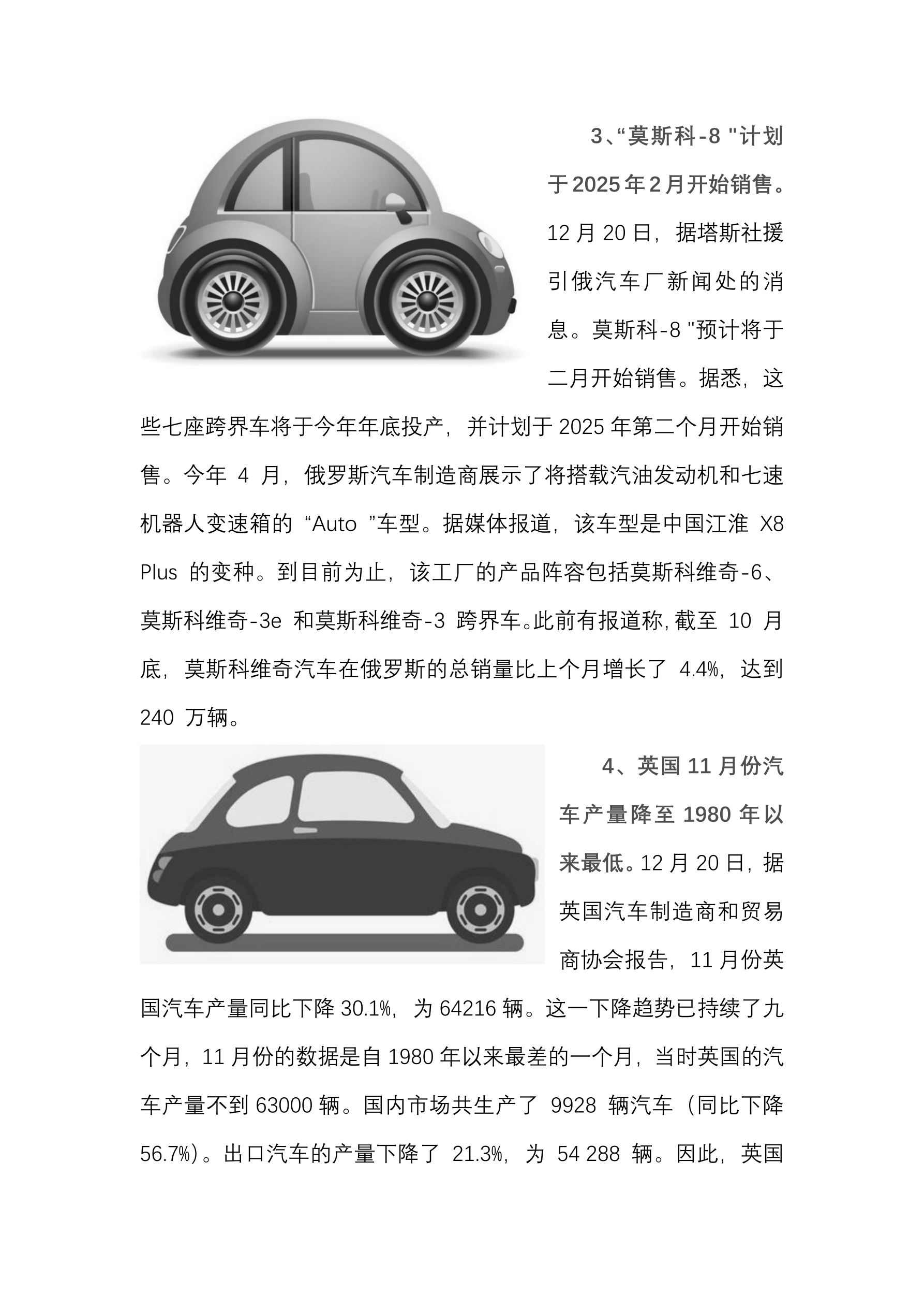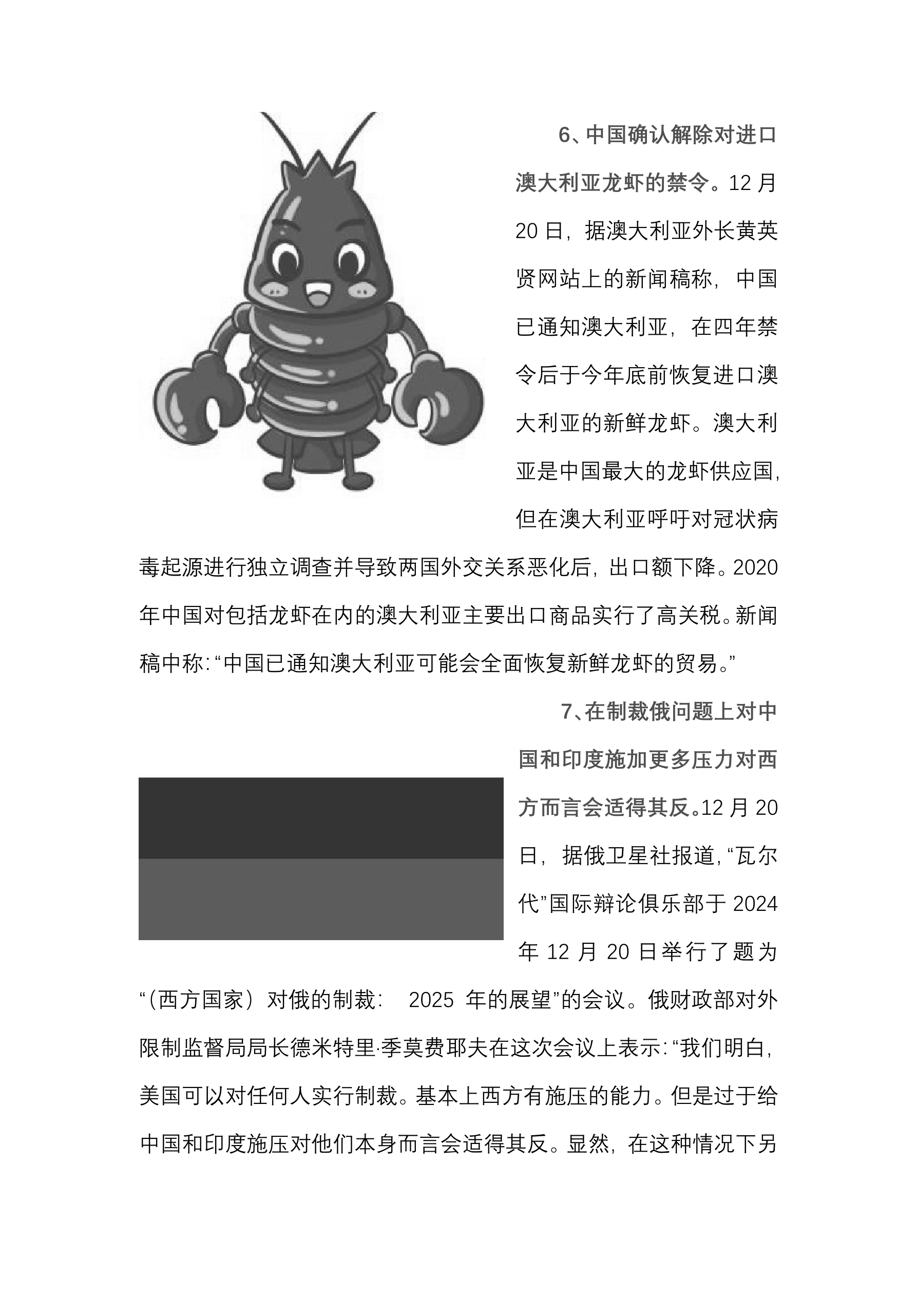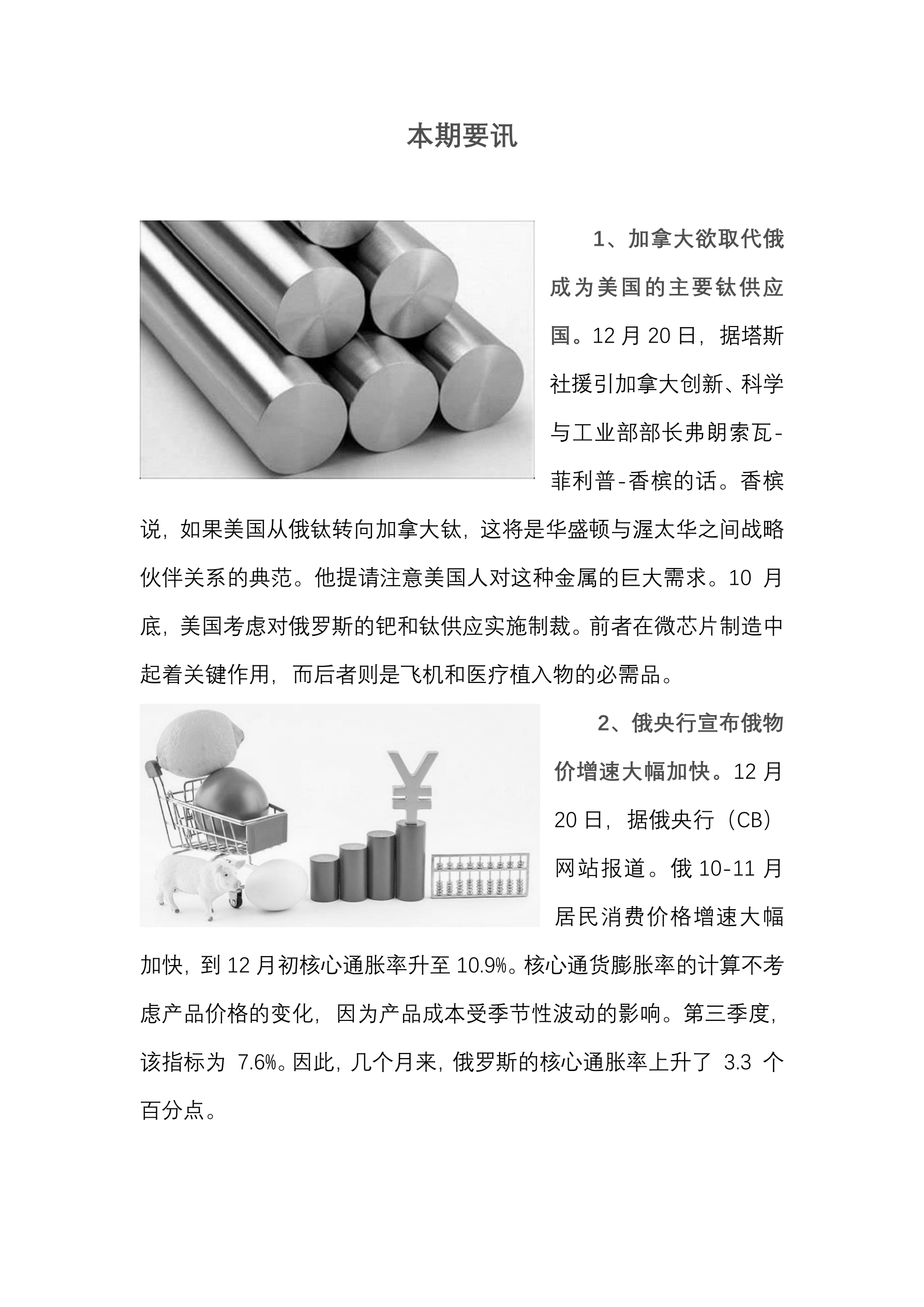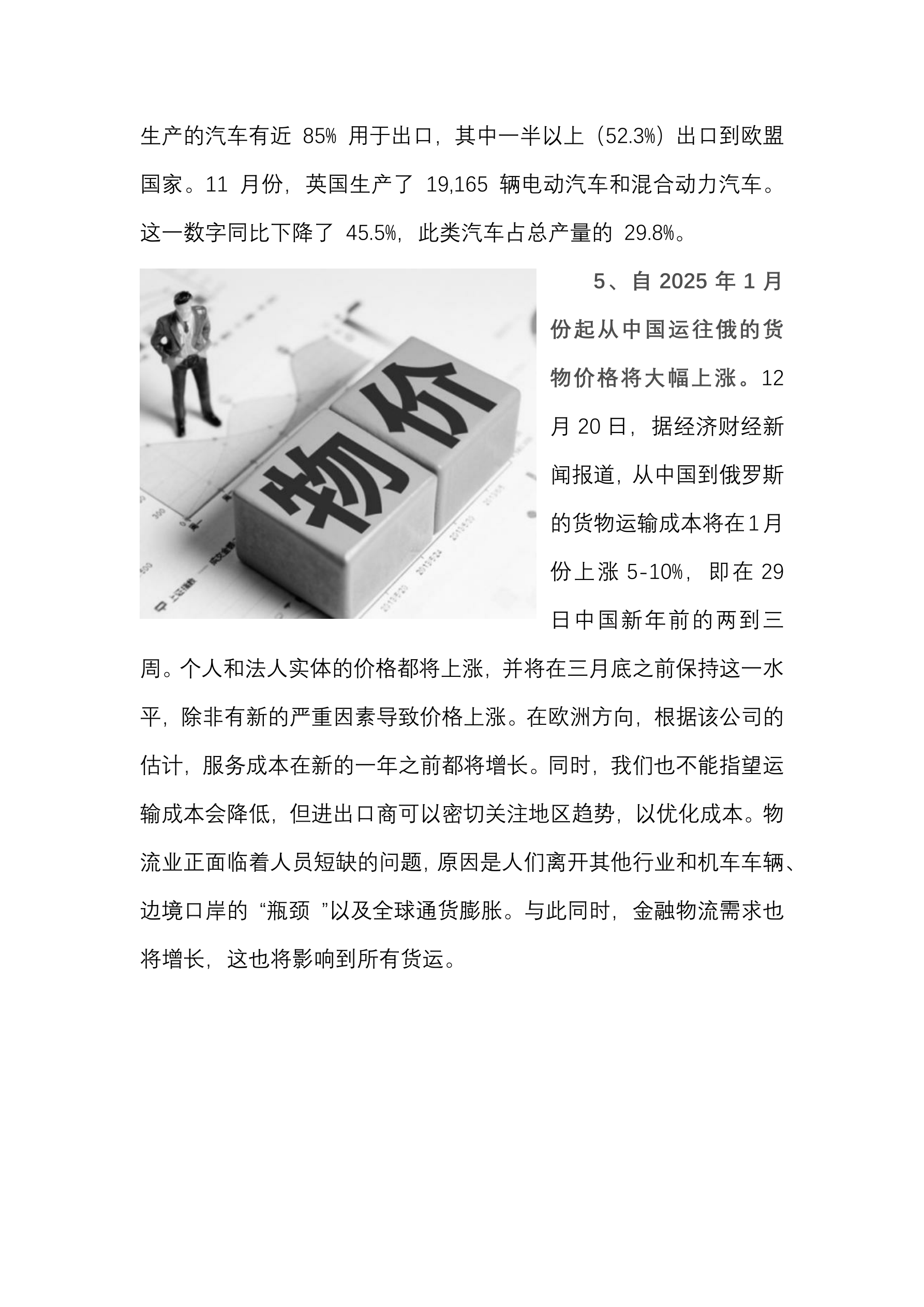 俄 Yandex Music 音乐流媒体订阅市场收益已达 22.7 亿人民币。 (12 月 20 日 国际文传电讯社) 俄超过 200 升的燃料卡车禁止进入拉脱维亚。 (12 月 20 日 国际文传电讯社) 俄政府将拨款 7110 万人民币用于初级卫生保健的现代化。 (12 月 20 日 国际文传电讯社) 俄境内航班经济舱价格上涨 14% 平均价格为 1030 元人民币。 (12 月 20 日 国际文传电讯社) 俄 2025 年 2 月 15 日至 6 月 30 日期间小麦出口配额将达到 1060 万吨。 (12 月 20 日 国际文传电讯社) 俄工业和贸易部将获得 8.5 亿人民币用来支持出口商竞争力。 (12 月 20 日 经济财经新闻) 俄 12 月 6 日至 13 日俄货币基础增加 133 亿人民币。 (12 月 20 日 经济财经新闻) 俄新年将为酒类饮品平均花费 260 元人民币。 (12 月 20 日 俄卫星社) 俄 1-11 月对华石油供应量同比增长 1.66% 至 9900 万吨。 (12 月 20 日 中国海关总署) ...