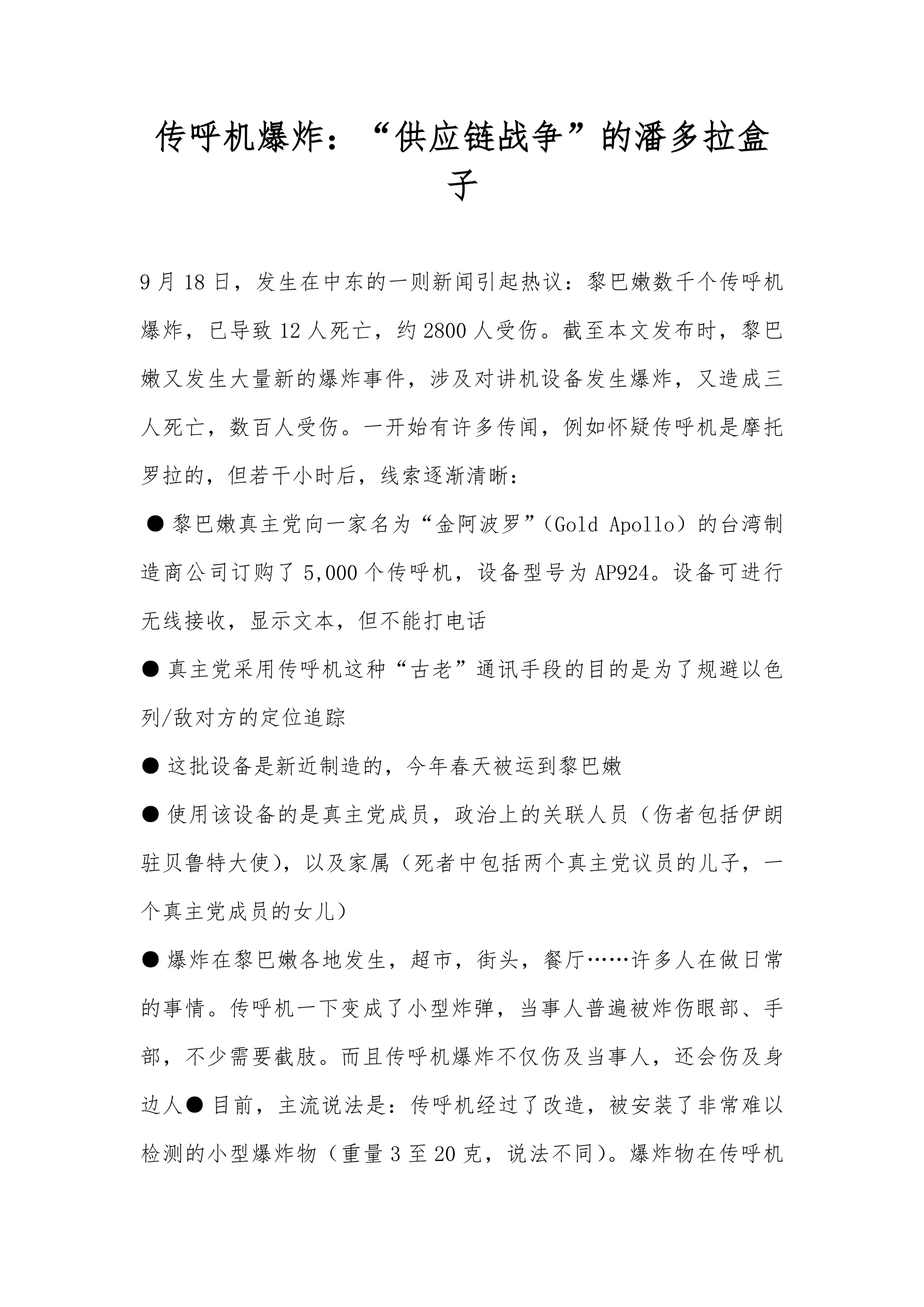 传呼机爆炸:“供应链战争”的潘多拉盒 子