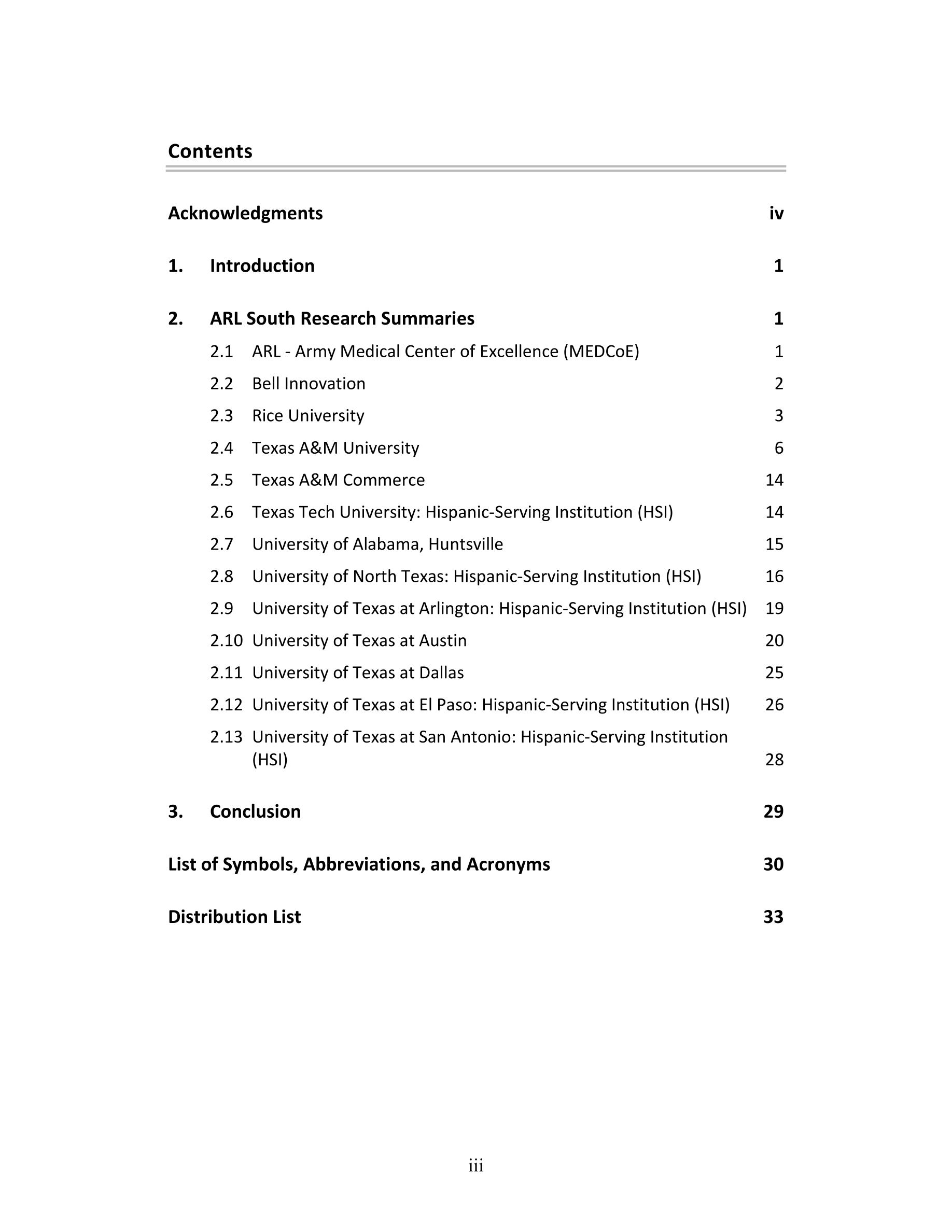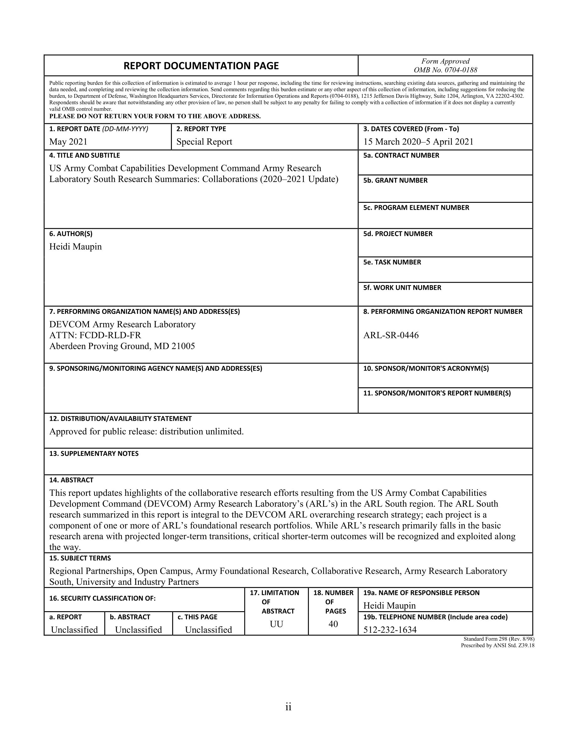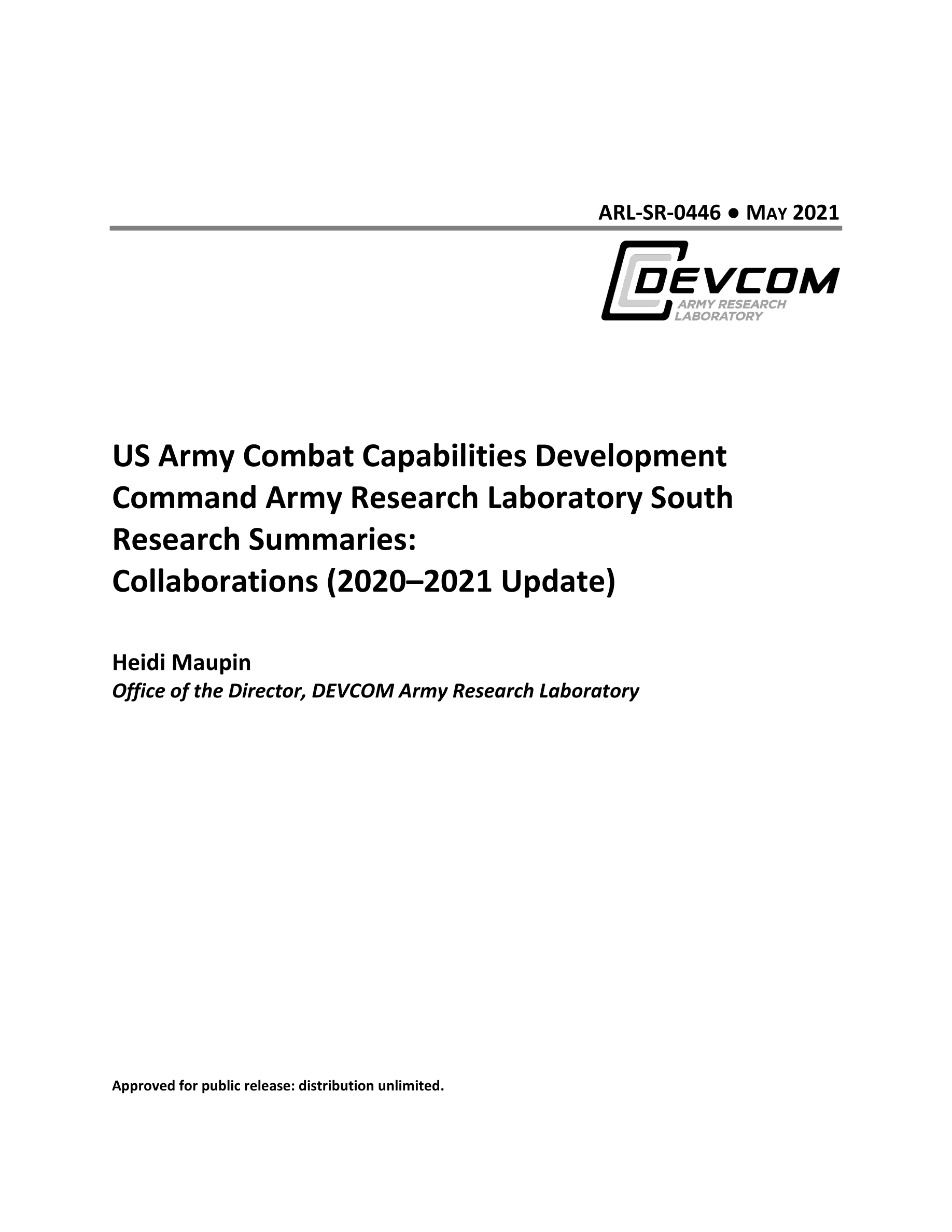 US Army Combat Capabilities Development Command Army Research Laboratory South Research Summaries: Collaborations (2020–2021 Update)