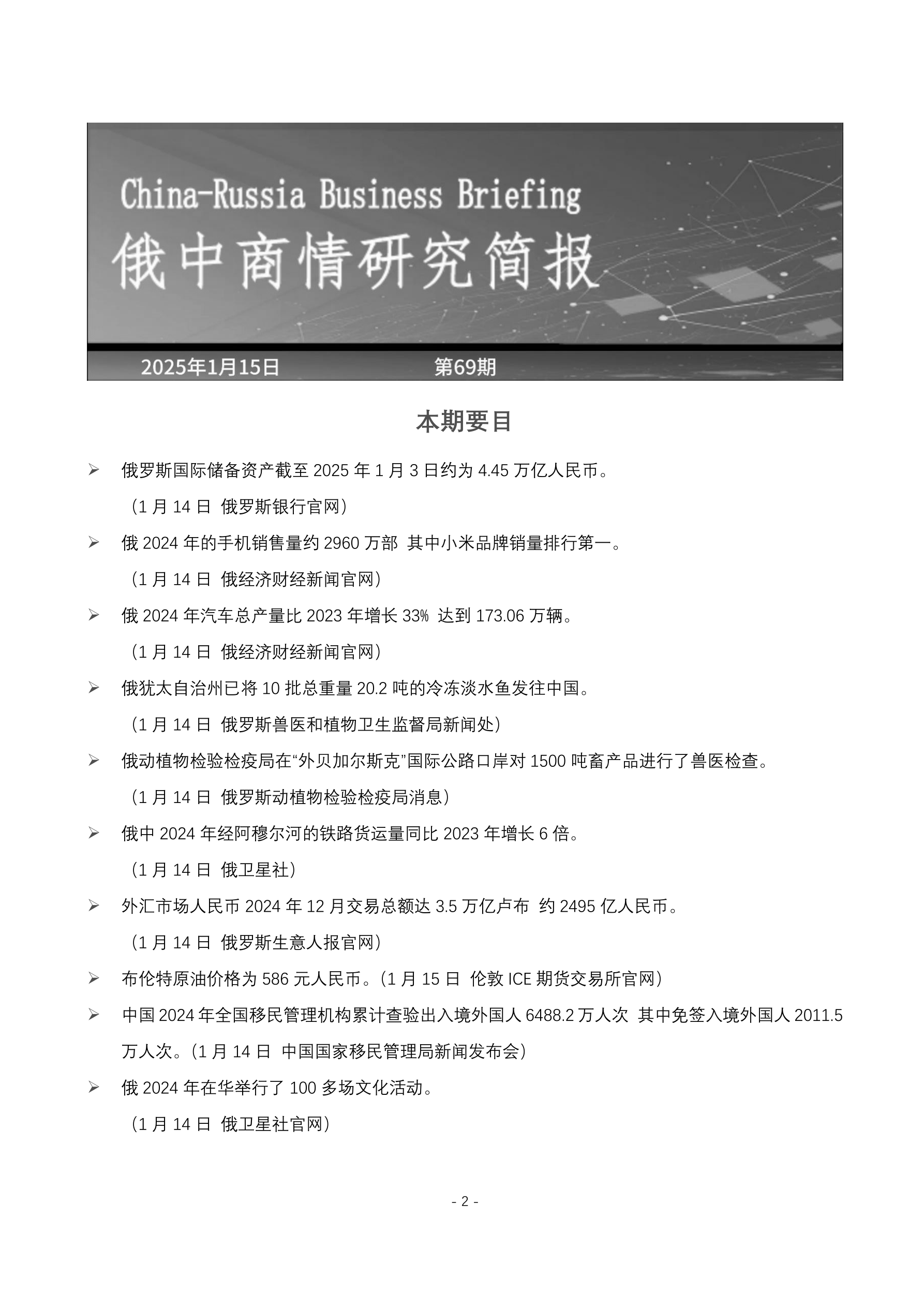 俄中商情研究简报2025. 1.15 第69期